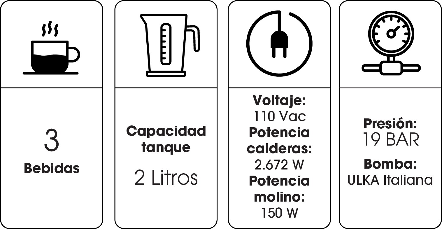 Conoce la comodidad de preparar espresso y capuchinos con nuestra máquina de espresso con molino de café incorporado, doble caldera y fácil limpieza. ¡Ideal para los amantes del café!