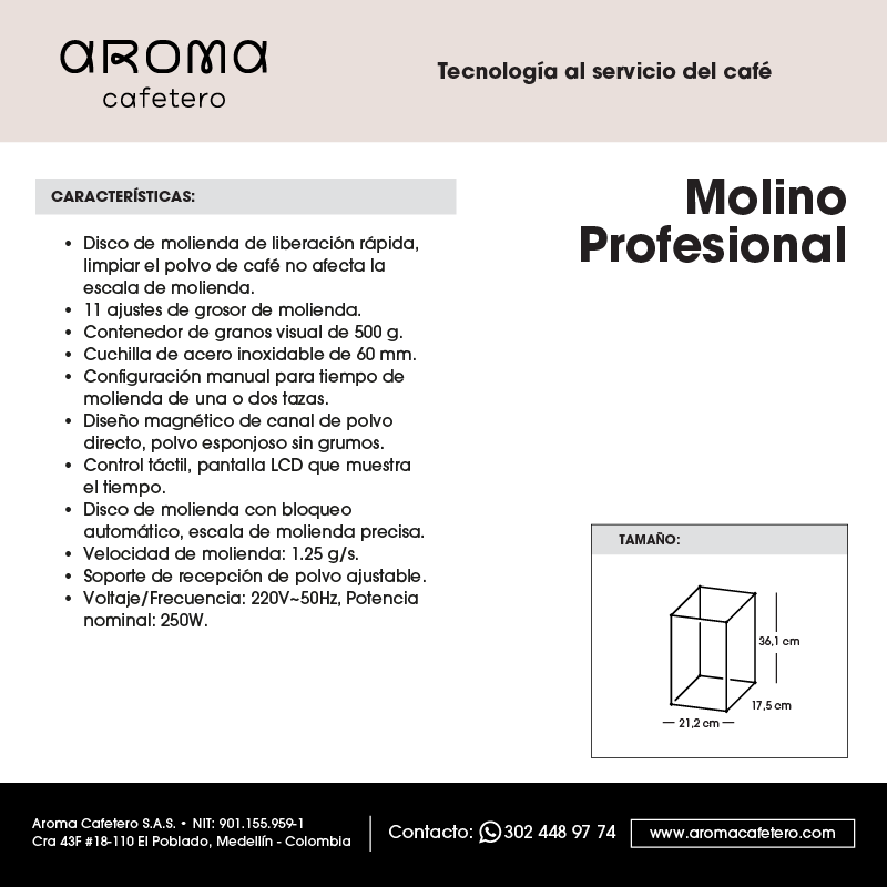Su cuchilla de acero garantiza durabilidad y precisión, mientras que el panel táctil con pantalla LCD permite ajustar fácilmente cada parámetro con total control. Es un equipo pensado para profesionales y amantes del café que no se conforman con lo básico, y que saben que un grano bien molido es el inicio de una bebida inolvidable. Calidad, potencia y diseño en un solo equipo que transforma el café en una experiencia.