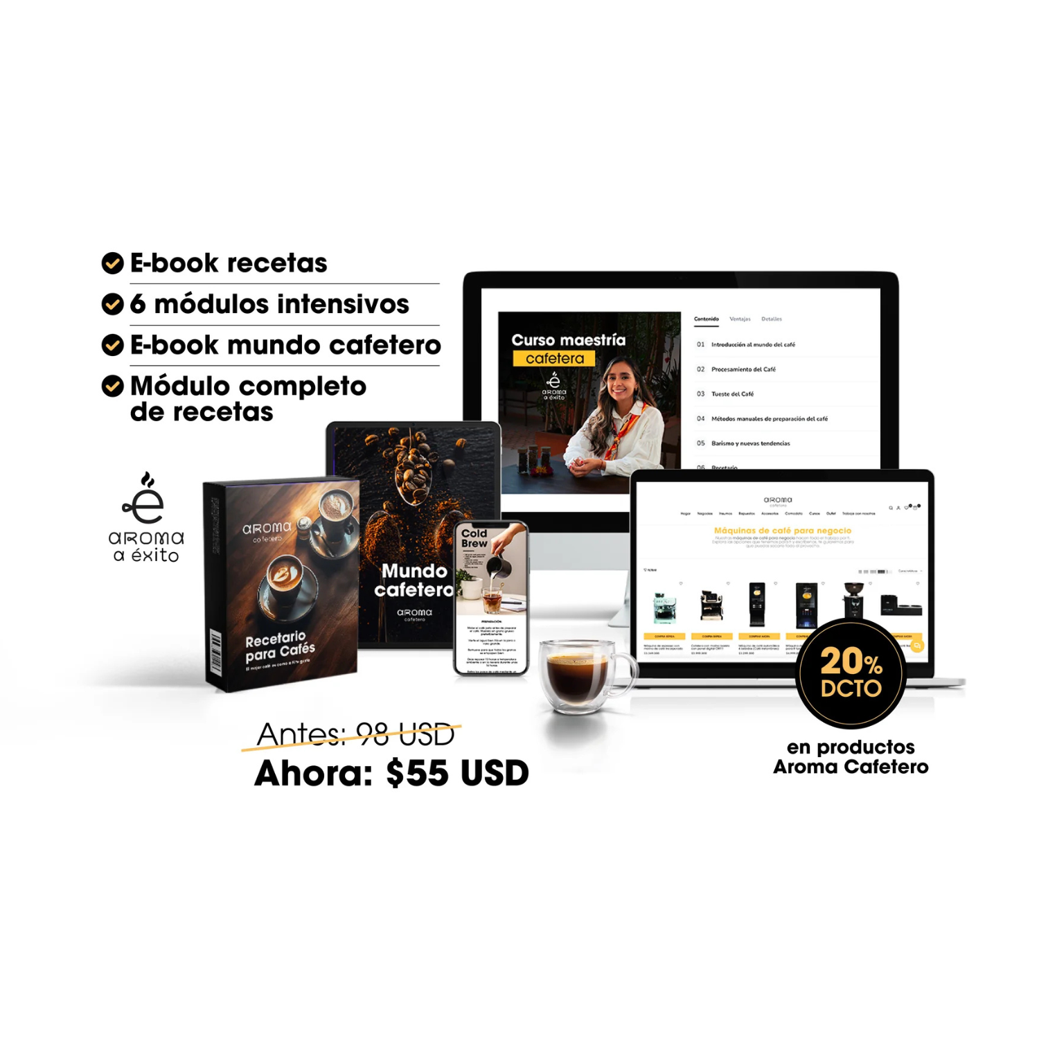 COMPRAR CURSOEl curso de café de Aroma al Éxito es la mejor forma que existe para llevar tu pasión a un nivel superior. A través de 6 módulos teórico-prácticos, descubrirás desde el cultivo y las variedades del café en Colombia y el mundo, hasta el arte de la cata profesional. Además, tendrás acceso a material descargable, guías prácticas y descuentos en insumos para complementar tu aprendizaje.