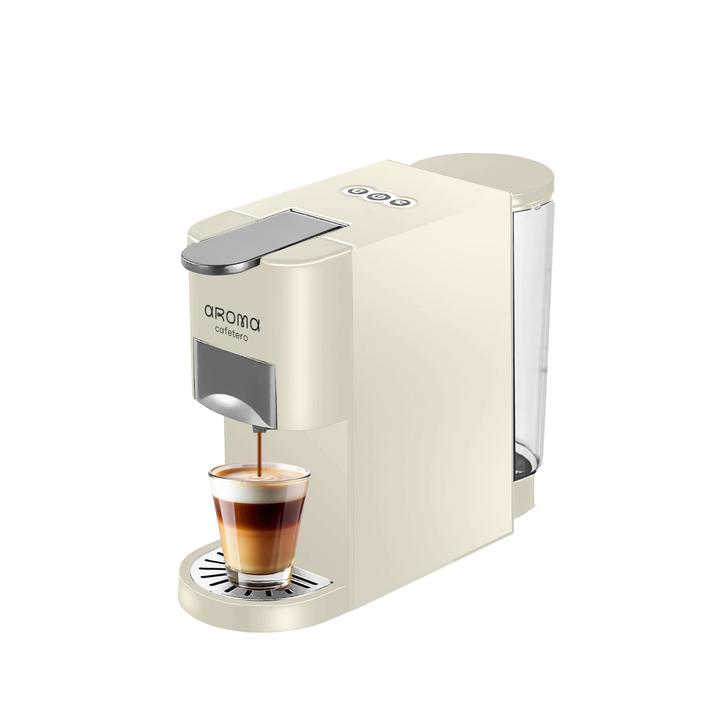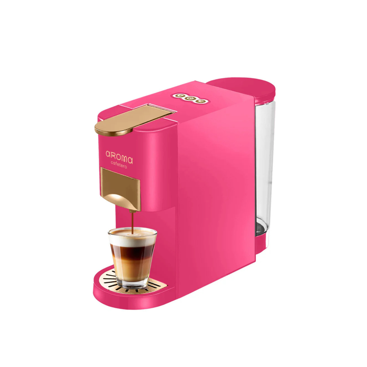 Esta cafetera de cápsulas tipo nespresso y café molido en colores rosado y beige es compacta, liviana y perfecta para espacios pequeños como cocinas, estudios u oficinas personales. Cuenta con tecnología de punta que garantiza que tú puedas disfrutar diferentes tipos de bebidas con distintas preparaciones, gracias a sus adaptadores intercambiables.