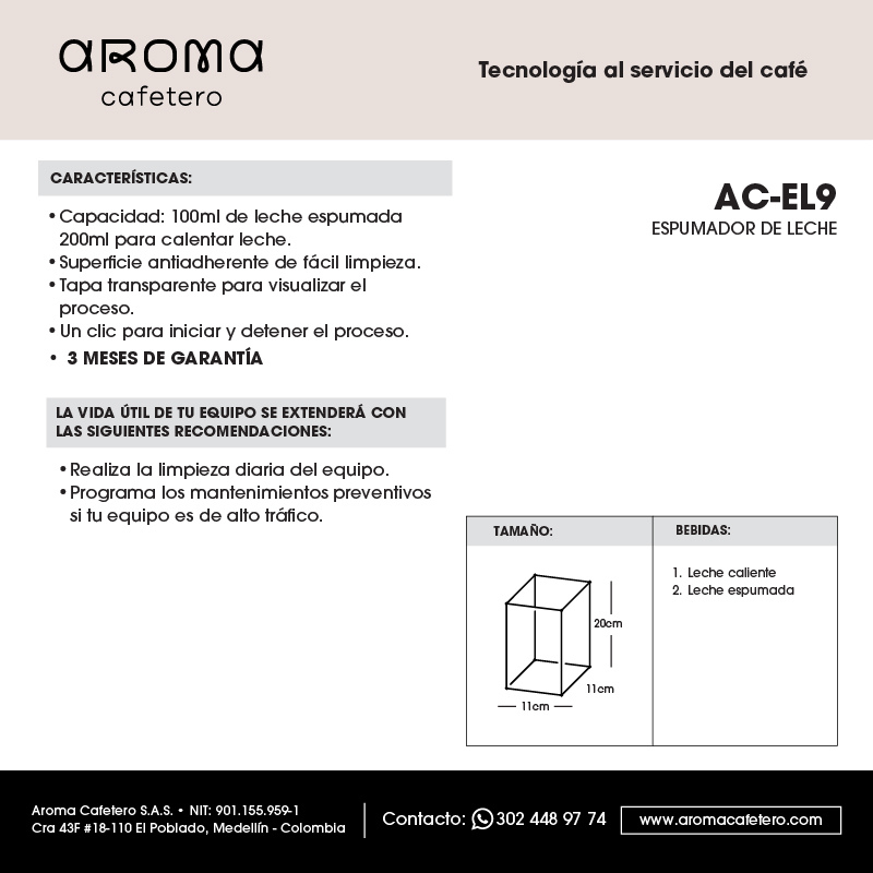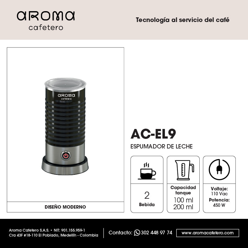 El espumador de leche eléctrico de 100 ml de Aroma Cafetero es la herramienta perfecta para elevar tus bebidas caseras al siguiente nivel de sabor y textura. Con su diseño compacto y color negro elegante, este espumador es ideal para crear esa espuma cremosa y perfecta que tanto amas en tus lattes, cappuccinos o incluso chocolate caliente.