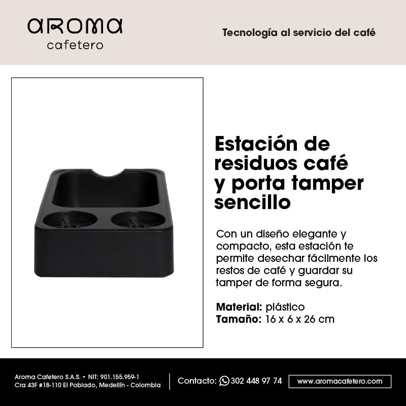 Optimiza tu espacio de trabajo con esta estación de tampeo sencilla, diseñada especialmente para manejar residuos de café y organizar porta elementos. Su diseño práctico facilita un proceso de preparación más limpio y eficiente, ayudándote a mantener el área ordenada mientras realzas la calidad de cada taza. Ideal para baristas que buscan funcionalidad sin complicaciones.