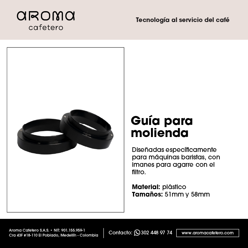 ¡Mejora tu técnica de molienda con nuestras guías para molienda! Disponible en dos tamaños, 51mm y 58mm, diseñadas específicamente para máquinas baristas. Obtén resultados consistentes y deliciosos en cada taza, ¡garantizado!