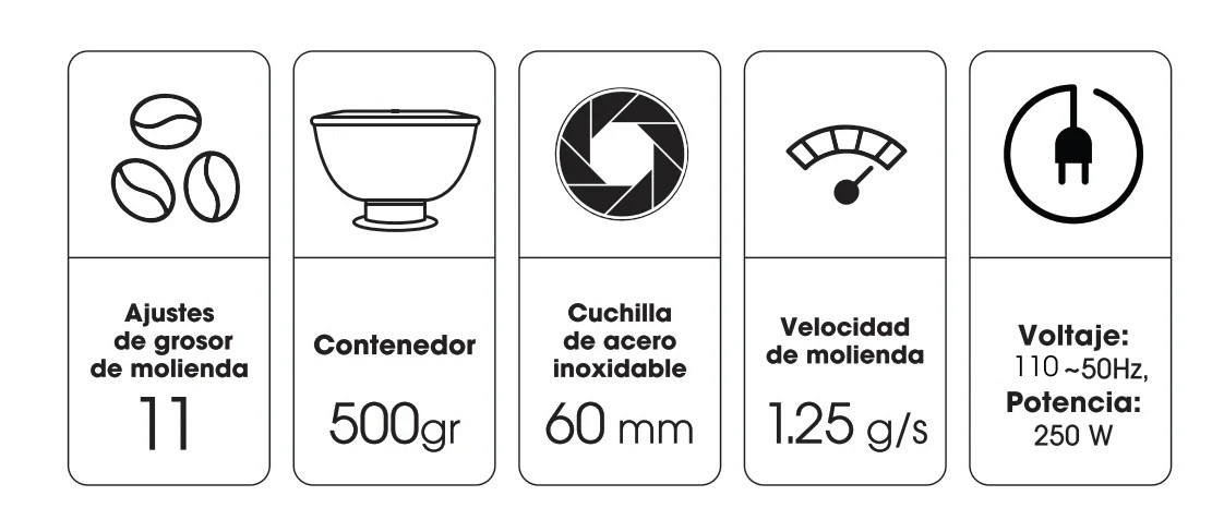 Consigue el molido perfecto con nuestro molino de café profesional, ideal para quienes buscan resultados consistentes y un sabor excepcional desde el primer paso. Gracias a sus 11 ajustes de grosor, puedes elegir el nivel de molienda ideal para tu tipo de preparación, desde espresso hasta cafetera de goteo, controlando al máximo la extracción y el carácter de cada taza.